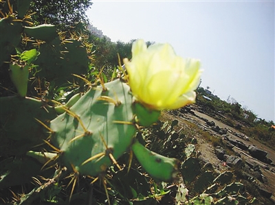 其实,在海南沿海海岸上,仙人掌是常见的植物。十多年前,我到过一个小岛,岛上仙人掌随处可见,在悬崖石壁的缝隙间,甚至在海浪拍岸的岩石底层、海水常年浸泡的地方,仙人掌照样顽强地生长、蓬勃向上。在岛上高处的石崖边上,一簇簇的仙人掌结满了色彩鲜艳、形态娇媚的黄花,着实惹人喜爱。正当我专注地观赏时,忽然一阵海风飘拂而过,仙人掌上的黄花在海风吹拂下左右摇曳,仿佛是在拍手欢迎我这位来自仙人掌丛生的岛西海岸的客人。