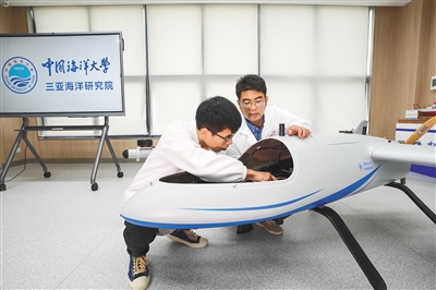 四月十一日,在位于三亚崖州湾科技城的中国海洋大学三亚海洋研究院,科研人员正在维护无人机。本报记者 武威 摄