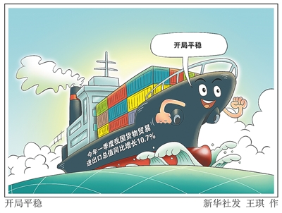 据新华社北京4月13日电 (记者邹多为 潘洁)海关总署13日发布的数据显示,今年一季度我国货物贸易进出口总值9.42万亿元,同比增长10.7%,外贸进出口开局平稳。数据显示,一季度,我国出口5.23万亿元,增长13.4%;进口4.19万亿元,增长7.5%。