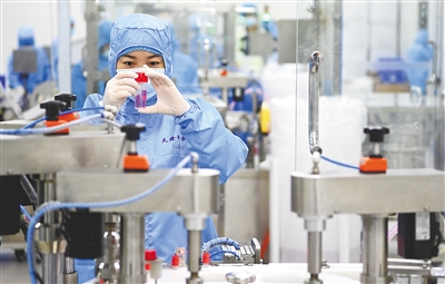 图为西安天隆科技有限公司员工加紧生产新型冠状病毒检测仪器及试剂。