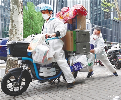 图为来自武汉的援沪小分队开展保供工作。 (本栏照片均由新华社发)