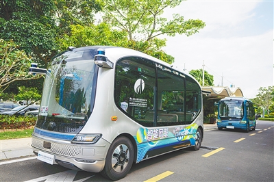 4月17日,在博鳌亚洲论坛国际会议中心,行驶在路上的无人驾驶车。本报记者 袁琛 摄