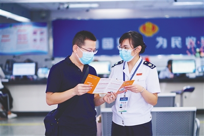 税务干部为纳税人答疑解惑。阮琛 摄