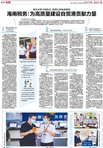 不只是独有的自贸港税收政策,党中央、国务院决定实施的一系列税费支持政策,海南省税务局也积极落实,确保纳税人应享尽享。