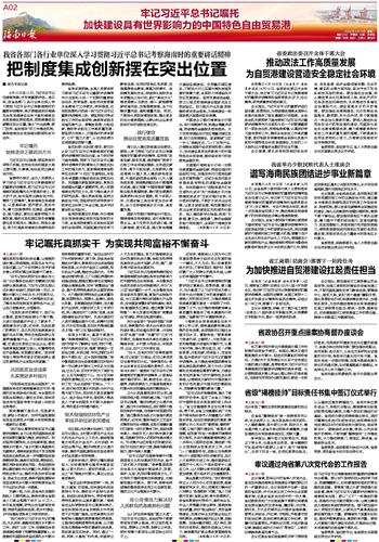会议还就全省纪检监察机关学习贯彻落实习近平总书记考察海南时的重要讲话精神作出部署。要以时不我待的劲头抓好学习领会、把握精髓要义,切实增强贯彻落实的责任感和紧迫感。要聚焦“国之大者”持续强化政治监督,确保习近平总书记重要讲话精神在海南落地生根。要以“三不”一体推进的理念、思路和方法开展反腐败斗争,让清正廉洁成为海南自贸港的鲜明底色。要不断加固中央八项规定的堤坝,以新风正气凝聚起奋进新征程的强大力量。要精准有力监督执纪执法,做到严管厚爱结合,激励约束并重。要深入开展能力提升建设年活动,打造政治过硬、本领高强的纪检监察干部队伍。