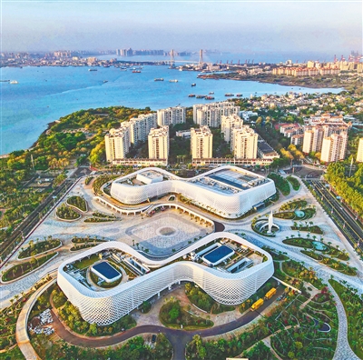 下一步,洋浦将把展示馆打造成一个对外宣传儋州洋浦的基地,让社会各界近距离了解儋州洋浦,积极参与儋州洋浦一体化建设。①洋浦展示馆内景。②展示馆所在地洋浦滨海文化广场全景。