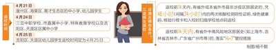 本报三亚4月18日电 (记者徐慧玲)4月18日,三亚市教育局发布通知称,三亚市中小学(含特殊教育学校)、幼儿园、职业学校、培训机构复课工作按照“分区、分批”的原则开展,三亚将安全、有序、错峰组织学校复课,保障疫情防控和复课工作有效有序开展。根据三亚市教育局制定的《三亚市中小学、幼儿园、职业学校、培训机构复课工作方案》(以下简称《方案》),防范区内的崖州区、海棠区、育才生态区的区属中小学、幼儿园学生,返校时间定为4月21日,三亚中职学校、市直属中小学、特殊教育学校以及吉阳区、天涯区区属中小学,返校时间定为4月24日,吉阳区、天涯区幼儿园学生返校时间定为4月25日,均执行返校前72小时(三天两检,两次核酸间隔24小时)两次核酸阴性证明返校。