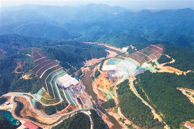 二〇二一年十一月三十日,南渡江迈湾水利枢纽工程项目实现大江截流。本报记者 李天平 摄