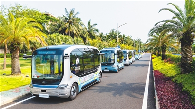 4月17日,在博鳌亚洲论坛国际会议中心,无人驾驶车在路上行驶。本报记者 袁琛 摄