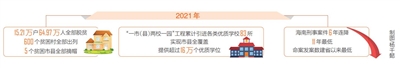 人大附中三亚学校、北京师范大学海口附属学校、清华大学附中文昌学校……“一市(县)两校一园”工程累计引进各类优质学校83所,实现市县全覆盖,提供超过16万个优质学位,引领带动区域义务教育质量快速提升,有力回应了海南人民群众对优质教育资源的热切期盼;