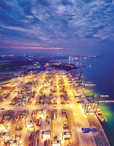 繁忙的洋浦国际集装箱码头。本报记者 陈元才 摄