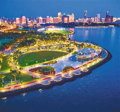 近年来,海南大力推进国际旅游消费中心建设,吸引境外消费回流,培育旅游消费新热点,旅游消费提质升级向全天候发展,璀璨的夜景正是夜间经济繁荣的见证。