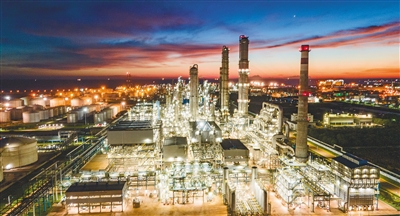 位于洋浦的中国石化海南炼油化工有限公司厂区灯火辉煌,生产繁忙。本报记者 陈元才 摄