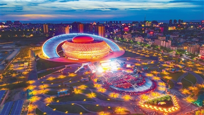 东方市文化广场灯光璀璨。 本报记者 陈元才 摄