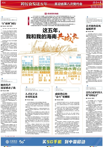 4月18日至23日,在省第八次党代会即将召开之际,本报开设“我和我的海南”栏目,用一个个的“奋斗者”的故事,反映5年来海南蓬勃发展的景象,最终汇聚成一幅宏大的“海南自贸港建设全景画像”。
