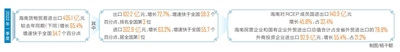 消费品及大宗商品引领进口。进口消费品141亿元,增长21.2%,直接拉动海南省货物贸易值增长9.4个百分点。海口海关统计处相关负责人表示,新增市场主体持续发力,大宗商品贸易繁荣,拉动海南大宗商品进出口大幅增长。一季度海南进出口矿砂、煤炭、油气、基本有机化学品等商品162亿元,增长157.7%,直接拉动海南省货物贸易值增长37.7个百分点。