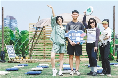 活动现场,水上项目体验、露营、市集、户外运动、露天影院等多种项目,让成都游客足不出市,体验“三亚的一天”,号召川渝地区游客市民在“五一”假期出游三亚。