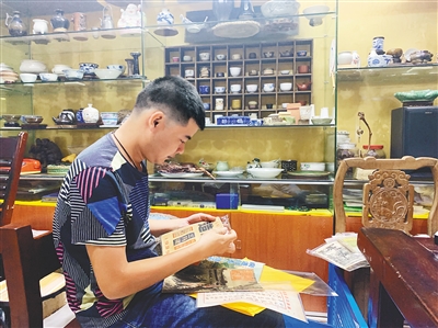 后来,张鸿与古币、瓷器、玉石等“老物件”打起了交道,如今经营着一家古玩铺子。“每一件古物都会说话”,在他看来,收藏、把玩、鉴赏的过程也是一个格物致知的过程。