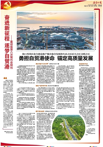 肩负使命,奋勇前行。站在新的历史起点上,秀英区上下弘扬伟大建党精神,勇担自贸港使命,锚定高质量发展,抢抓机遇、乘势而上,在做强产业、做优城市、做美乡村、做好生态上下功夫,加快建设港产城乡融合发展的生态之区、活力之区、文明之区。