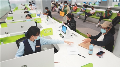 近日,海口市龙华区政务中心,工作人员给市民办理相关业务。 本报记者 张茂 摄