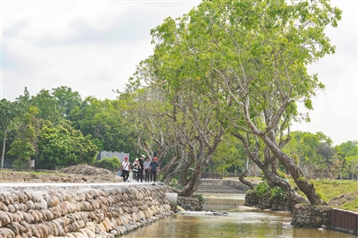 “我们主要是结合生态修复和水美乡村相衔接的理念,根据4条河流的不同特点,以‘树、花、鸟、院’为4个前提,结合历史背景,进行深入的理念深化从而进行项目打造,整个工期预计至2023年的3月份完工。”中国水电基础局儋州市水系连通及水美乡村建设试点县项目负责人李凯说。