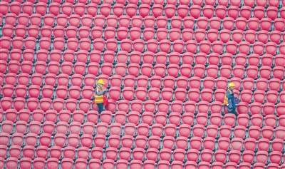 体育场内部分座椅已经安装完成。 本报记者 陈元才 摄