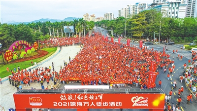 “致敬!红色娘子军”二〇二一琼海万人徒步活动现场。本报记者 张茂 摄