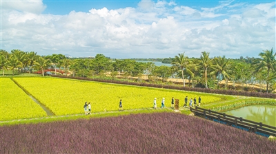 游客畅游琼海市博鳌镇留客村。本报记者 袁琛 摄