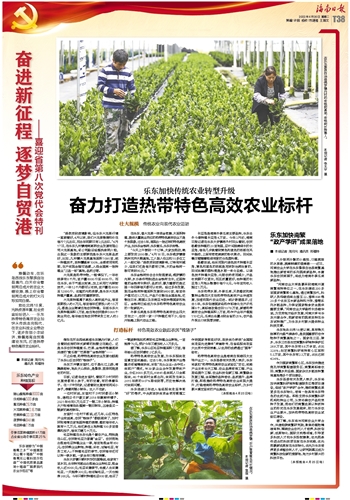 乐东县委有关负责人表示,乐东将加快南繁科研育种配套服务区等项目建设,促成“政产学研”合作,推动南繁成果更多在乐东转化,培育一批具有乐东特色的优质产品。积极支持乐东南繁科研机构和种业公司,从卖终端农产品向卖种子发展,把他们的南繁成果以种质种业的形式在乐东发展起来,助力乐东农业产业振兴,加快热带特色高效农业试验区建设。