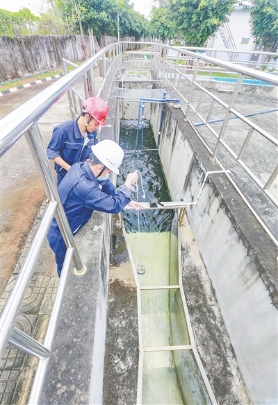 在澄迈县金江污水处理厂,工作人员在进行污水采样。本报记者 陈元才 摄