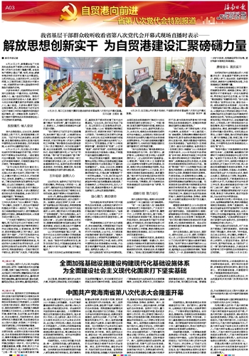 沈晓明指出,今后五年的重点任务是:第一,坚持服务和融入新发展格局,建设开放包容、合作共赢的自由贸易港。加快探索自由贸易港积极服务和融入新发展格局的有效路径,更好集聚和配置全球资源,形成更大范围、更宽领域、更深层次对外开放格局。第二,坚持全面深化改革,建设勇于创新、充满活力的自由贸易港。把制度集成创新摆在突出位置,既总结我们自己的做法,又借鉴兄弟省份和国际有益经验,统筹改革发展稳定,坚持先立后破、不立不破,不断解放和发展生产力。第三,坚持高质量发展,建设产业聚焦、区域协调的自由贸易港。充分发挥现代产业体系和区域协调发展“两大引擎”作用,推动质量变革、效率变革、动力变革。第四,坚持生态立省,建设生态一流、绿色低碳的自由贸易港。正确处理发展与保护的关系,扎实推进国家生态文明试验区建设,让良好的生态环境成为海南子孙后代的金饭碗。第五,坚持守牢底线,建设安全有序、风险可控的自由贸易港。坚持底线思维、极限思维,加强重大风险识别和防范,提高应对各类风险挑战的能力,确保风险找得准、防得住、控得牢。第六,坚持以人民为中心,建设共建共享、共同富裕的自由贸易港。坚持尽力而为、量力而行,实施更多有温度的举措,落实更多暖民心的行动,用心用情用力解决好人民群众的急难愁盼问题,积极探索共同富裕的实现途径,让人民群众有更多获得感。第七,坚持推进治理体系和治理能力现代化,建设平安法治、文明和谐的自由贸易港。坚持党的领导、人民当家作主、依法治国有机统一,不断丰富和完善全过程人民民主,全面做好社会治理工作,实现社会祥和稳定、百姓幸福安宁。第八,坚持和加强党的全面领导,建设党建引领、风清气正的自由贸易港。不断提高党把方向、谋大局、定政策、促改革的能力和定力,发挥党建引领作用,确保自由贸易港建设沿着正确方向阔步前行。