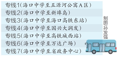 本报海口4月26日讯 (记者郭萃)为进一步扩大学校辐射范围,确保运力精准投放和师生精准接送,海口公交集团将于4月29日新增开通海口中学7条公交助学定制专线,至此公交助学试点学校达到2所,累计开通专线9条。据了解,海口公交集团继开通海南中学美伦校区2条公交助学定制专线后,积极响应海口中学提交的学生公交出行需求,规划7条公交助学定制专线,共配置14辆公交大巴车。策划出最佳运行路线及停靠站点,覆盖了主要居民区,方便学生就近上下车,为师生提供校门到家门一站式服务,有效解决了部分家长接送难题,让学生的上学路更省时省心。同时,也减少了疫情期间学生在出行途中不必要的接触。