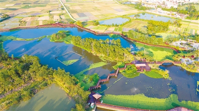 俯瞰位于屯昌县屯城镇东南部的文赞湿地公园。 方山 摄
