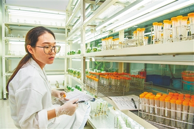 在海南波莲水稻基因科技有限公司实验室里,科研人员正忙碌着。本报记者 袁琛 摄