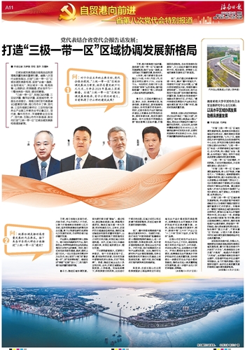 ■ 本报记者 尤梦瑜“打造‘三极一带一区’区域协调发展新格局,是海南加快推进区域经济优势互补、推动海南自贸港建设的重要举措。”4月27日,海南师范大学中国特色自由贸易港研究中心主任、研究员刘锋在接受海南日报记者采访时表示,“三极一带一区”将进一步明晰海南区域功能定位、优化布局,深入推进“全省一盘棋、全岛同城化”建设,有利于促进各类要素合理流动和高效聚集。