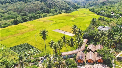 ■ 本报记者 曾毓慧“你瞧,那3间紧挨的船型茅草屋,以前可是我们一大家子的房子!现在都修旧如旧,变成旅游民宿啦!”4月27日,在昌江黎族自治县王下乡洪水村,年过五旬的村民韩志民坐在稻田边的凉亭藤椅上纳凉,在他所指的方向,20多间茅草铺顶、草泥糊墙,形似一艘倒扣的木船状房屋错落有致地矗立于椰树或槟榔树下。环顾四周,青山含黛,仔细聆听,山泉叮咚,此情此景犹如世外桃源。这就是王下乡“黎花里”文旅项目——黎花二里“时光里”特色民宿。