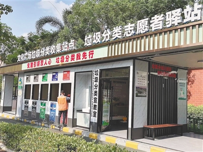 在儋州市那大文化广场的生活垃圾分类屋,工作人员正在作业。 本报记者 易宗平 摄