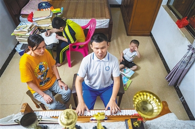 甘运享还有两个弟弟,爸爸甘昌团为了撑起这个家,常年在外打工赚钱。照顾3个孩子的责任都压在了李小燕柔弱的肩上。为了让孩子练好钢琴,李小燕2017年辞掉了食品公司的工作,每天陪着孩子练钢琴。