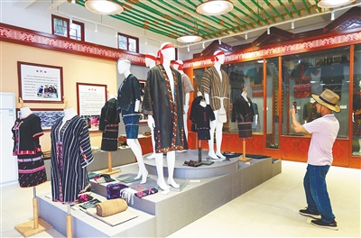 参观者在西黎民族文化展示馆观赏黎族织锦。海南日报记者 武威 摄