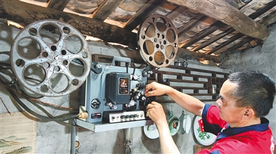 看着这三台二十世纪七十年代的“长江牌”F16-4型电影放映机,林书国心想,要是能用起来就更好了,那样才能真正还原当年的生活场景。通过细致的摸索和借助一些电工技术,林书国对电影放映机做了研究,经过专业的修复和安装,他惊讶地发现,这三台机子还能正常放映,除了影带因岁月沉淀氧化导致播放时略微发红外,没有什么大问题。