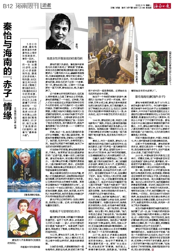 秦怡与海南的渊源,始于1979年上映的电影《海外赤子》。作为新中国第一部反映海外华侨及归侨子女生活境遇的故事片,片中矢志不渝投身祖国社会主义建设的归国华侨黄德深夫妇,以及他们纯真勇敢、极富音乐天分的女儿黄思华,在观众心中留下了不可磨灭的印象。秦怡在该片中出演归国华侨黄德深的妻子林碧云。片中,秦怡出演的林碧云有一句令人振耳发聩的台词:“你们为什么要破坏我的祖国!”这个疑问句,今天仍然在拷问着某些人的灵魂。