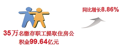 提取额稳定增长,惠及更多职工。2021年,35万名缴存职工提取住房公积金,提取额99.64亿元,同比增长8.86%,占当年缴存额的61.47%。