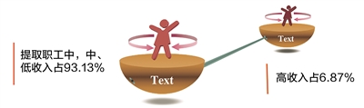 住房公积金提取业务主要惠及中低收入人群的住房需求。提取职工中,中、低收入占93.13%,高收入占6.87%,有效支持了中、低收入职工购买住房和改善住房条件。
