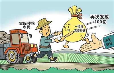 新华社北京5月22日电 (记者申铖)记者22日从财政部了解到,中央财政近日下达资金100亿元,再次向实际种粮农民发放一次性农资补贴,支持夏收和秋播生产,缓解农资价格上涨带来的种粮增支影响,进一步调动农民种粮积极性。为保护农民种粮积极性,中央财政此前已对实际种粮农民发放一次性补贴200亿元。据介绍,中央财政进一步完善补贴政策,明确补贴对象为实际承担农资价格上涨成本的实际种粮者。补贴标准由各地区结合有关情况综合确定,原则上县域内补贴标准应统一。