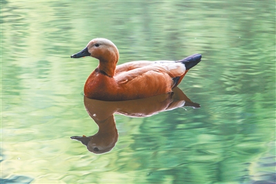 在南京市紫金山脚下燕雀湖,一只赤麻鸭在水中游弋。