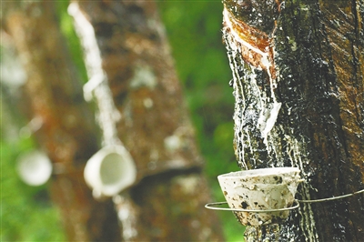 橡胶树流出胶水。 海南日报记者 张茂 摄