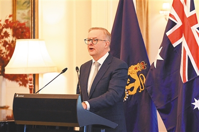 澳大利亚工党党首安东尼·阿尔巴内塞23日在堪培拉宣誓就职,正式成为澳大利亚第31任总理。就职仪式在总督府举行,阿尔巴内塞向澳大利亚总督戴维·赫尔利进行宣誓。一同宣誓就职的还有新任命的副总理兼就业部长理查德·马尔斯、外交部长黄英贤、国库部长吉姆·查默斯,以及兼任财政部长、女性事务部长和总检察长的凯蒂·加拉格尔。新华社/法新