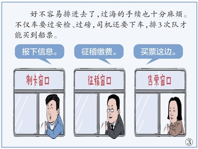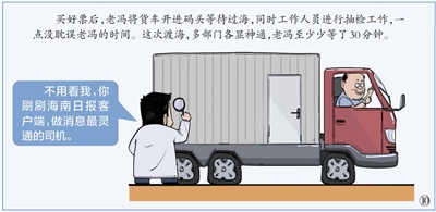 时间都去哪了?时间消耗在办理繁杂手续的来回奔波中,流逝于排队渡海的漫长等待里。曾几何时,这是影响货车快速过海的堵点,是困扰货车司机的心结,也是让治理者挠头的问题。经过政企携手努力,如今海口新海港实现了货车司机全程不下车办理过海手续,每天可为2000多辆货车提供高效便捷过海服务。这样的变化令人欣喜。