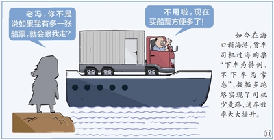 目前,海口新海港实现了货车司机全程不下车即可办理过海手续,每天可为2000多辆货车提供高效便捷过海服务。