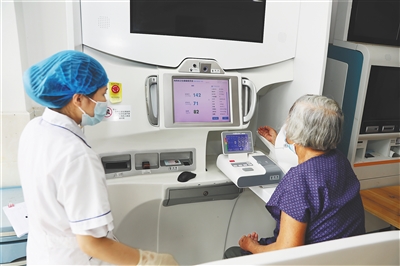 澄迈县永发镇中心卫生院用健康一体机服务患者。 本报记者 李天平 摄